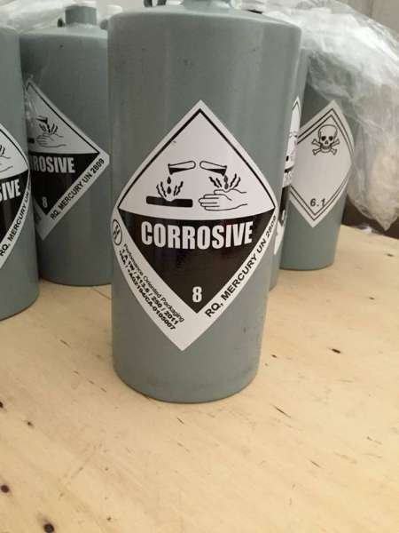 | Virgin Mercury purity = 99.99% by wt min. | Product name: Silver liquid mercury |